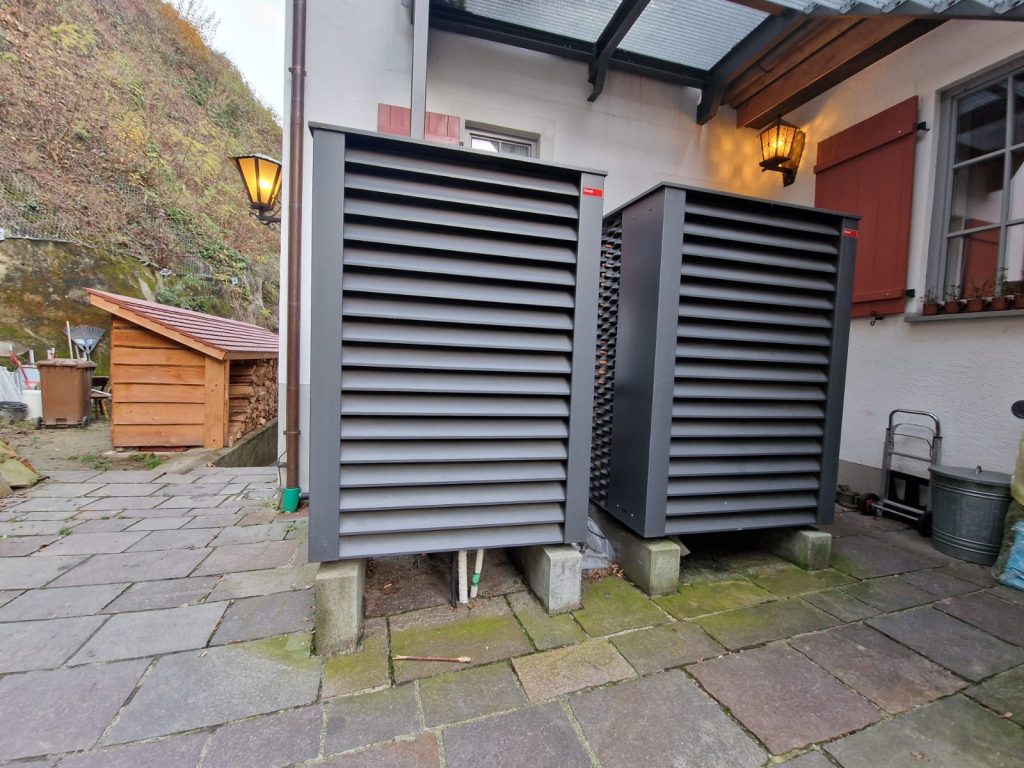 Im Zuge der Generalsanierung eines denkmalgeschützten Wohnhauses mit Gastronomiebetrieb wurde auch das Heizsystem vollständig erneuert. Zwei Luft-Wasser-Wärmepumpen übernehmen heute den überwiegenden Teil der Wärmeversorgung. Für die hohen Warmwasser-Spitzenlasten der Gastronomie ist ergänzend ein Gaskessel installiert, der ausschließlich diese Lastspitzen abdeckt.