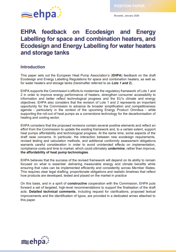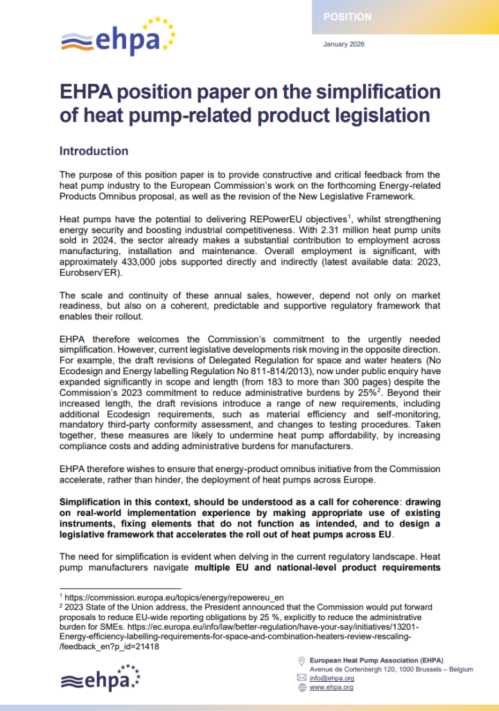 Positionspapier der EHPA zur Vereinfachung der Produktvorschriften für Wärmepumpen
